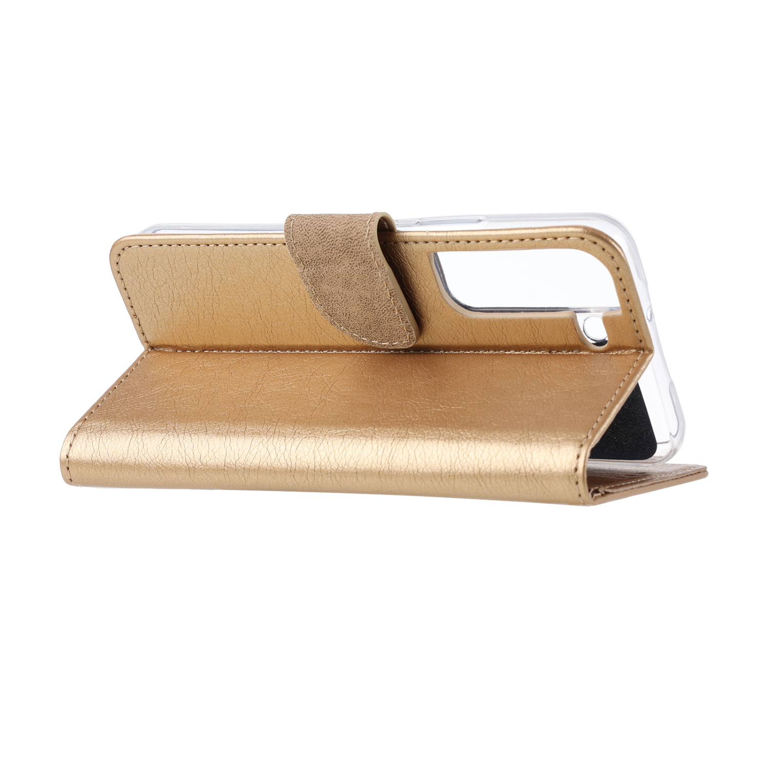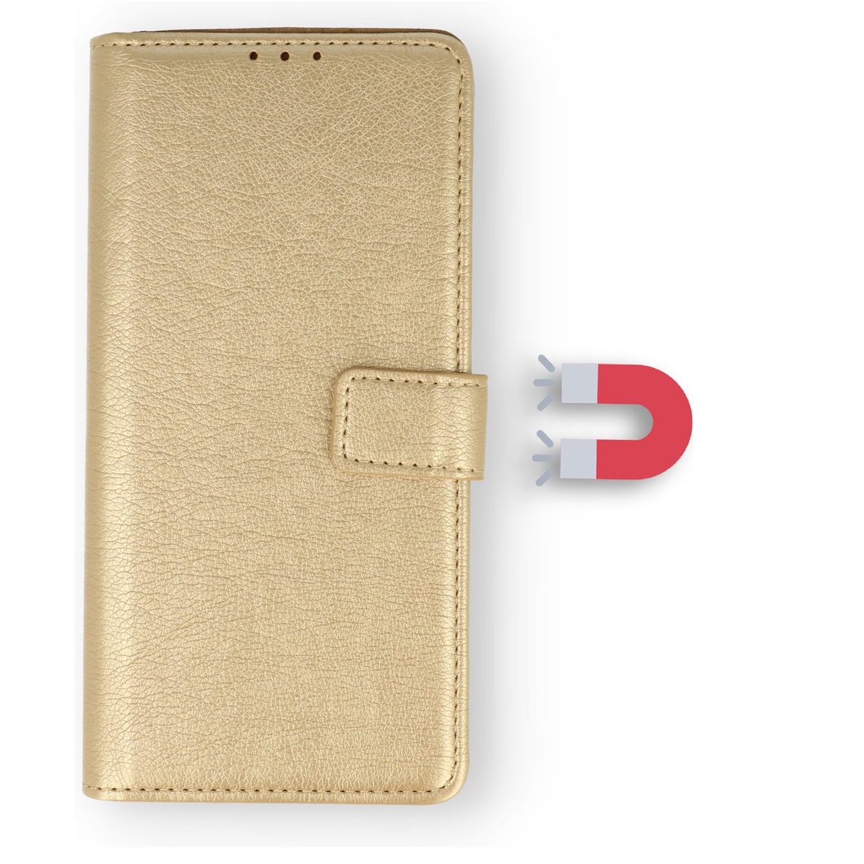 [ Portemonnee-ontwerp ] De Goud gekleurde bookcase beschikt ook over kaartvakken, waarbij u uw belangrijke kaarten in kunt plaatsen. Portemonnee en telefoonhoesje in 1.