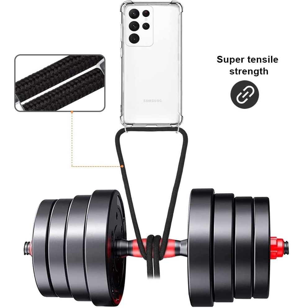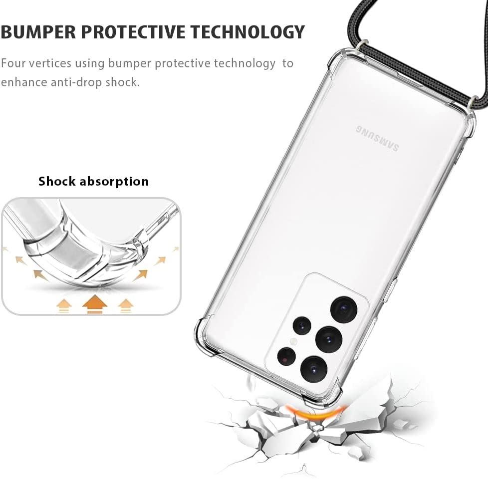Hoesje geschikt voor Samsung Galaxy S22 Ultra 5G met koord – draagriem – nek – kettinghoesje – Antishock – Transparant