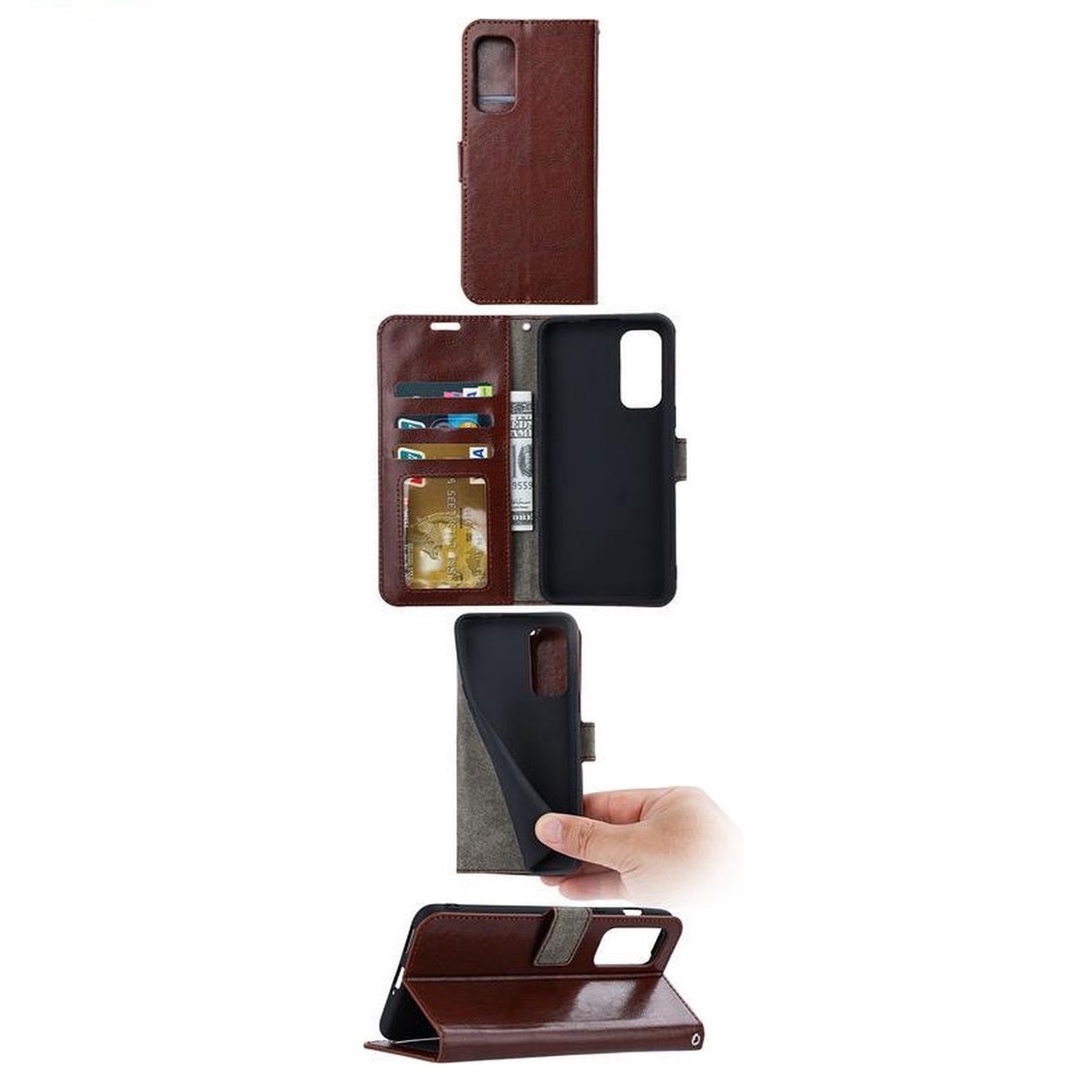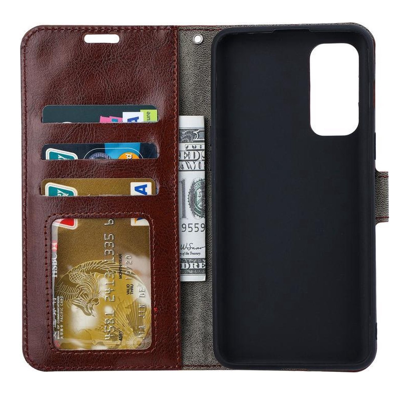 [ Portemonnee-ontwerp ] De Bruin gekleurde bookcase beschikt ook over kaartvakken, waarbij u uw belangrijke kaarten in kunt plaatsen. Portemonnee en telefoonhoesje in 1.