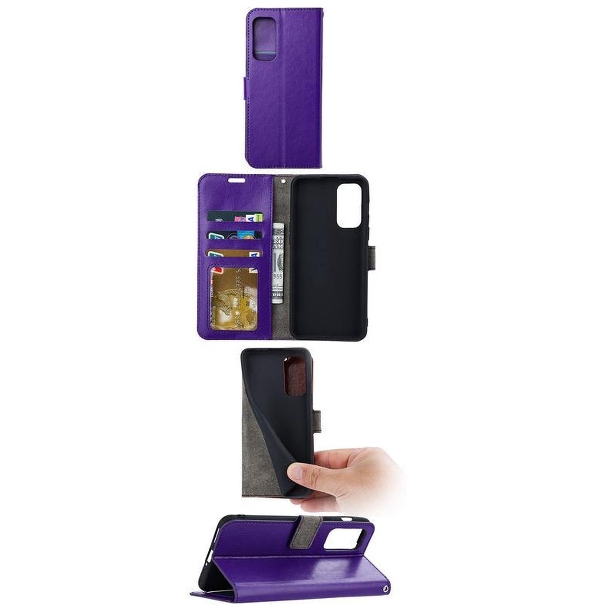 [ Portemonnee-ontwerp ] De Paars gekleurde bookcase beschikt ook over kaartvakken, waarbij u uw belangrijke kaarten in kunt plaatsen. Portemonnee en telefoonhoesje in 1.
