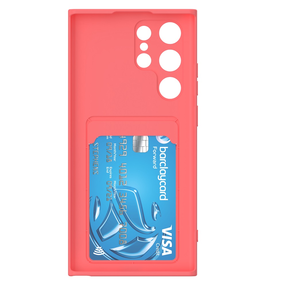 Dit siliconen hoesje met pasjeshouder is speciaal gemaakt voor uw Samsung S22 Ultra en heeft daarom een perfecte pasvorm. Het siliconen hoesje is voorzien van een pasjeshouder waar twee pasjes in passen. Het hoesje is zodanig ontworpen om alle benodigde uitsparingen zoals poorten en knoppen bereikbaar en toegankelijk te houden. Hierdoor is het hoesje heel eenvoudig in gebruik en ook zeer gewild bij veel smartphonegebruikers. Door de fijne grip en (binnenkant) textuur hoeft je de hoesje voor een lange tijd niet meer te verwijderen. Voor wat betreft het draadloos opladen wat tegenwoordig bij alle Samsung S22 Ultra smartphones kan, belemmert het hoesje je op geen enkel manier.
