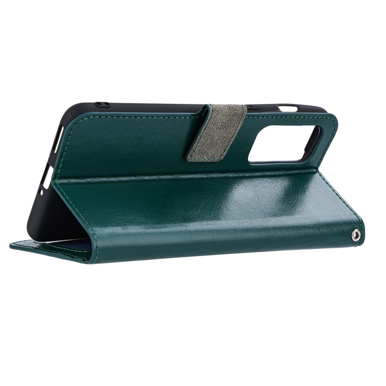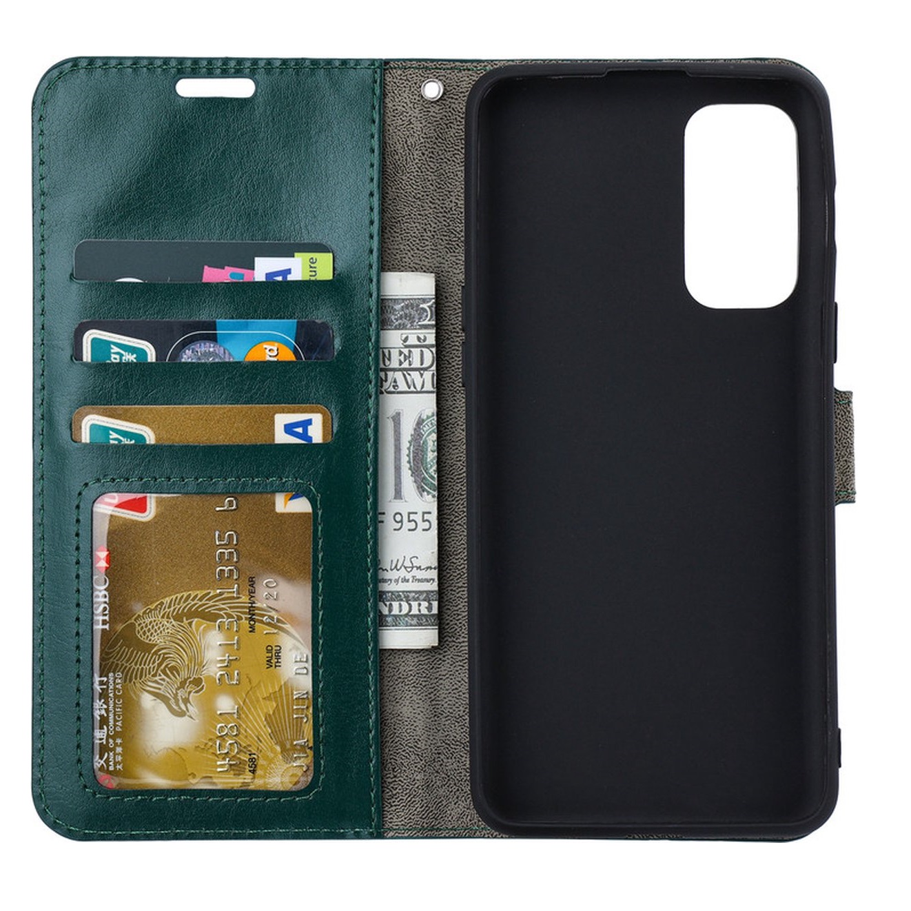 [ Portemonnee-ontwerp ] De Groen gekleurde bookcase beschikt ook over kaartvakken, waarbij u uw belangrijke kaarten in kunt plaatsen. Portemonnee en telefoonhoesje in 1.