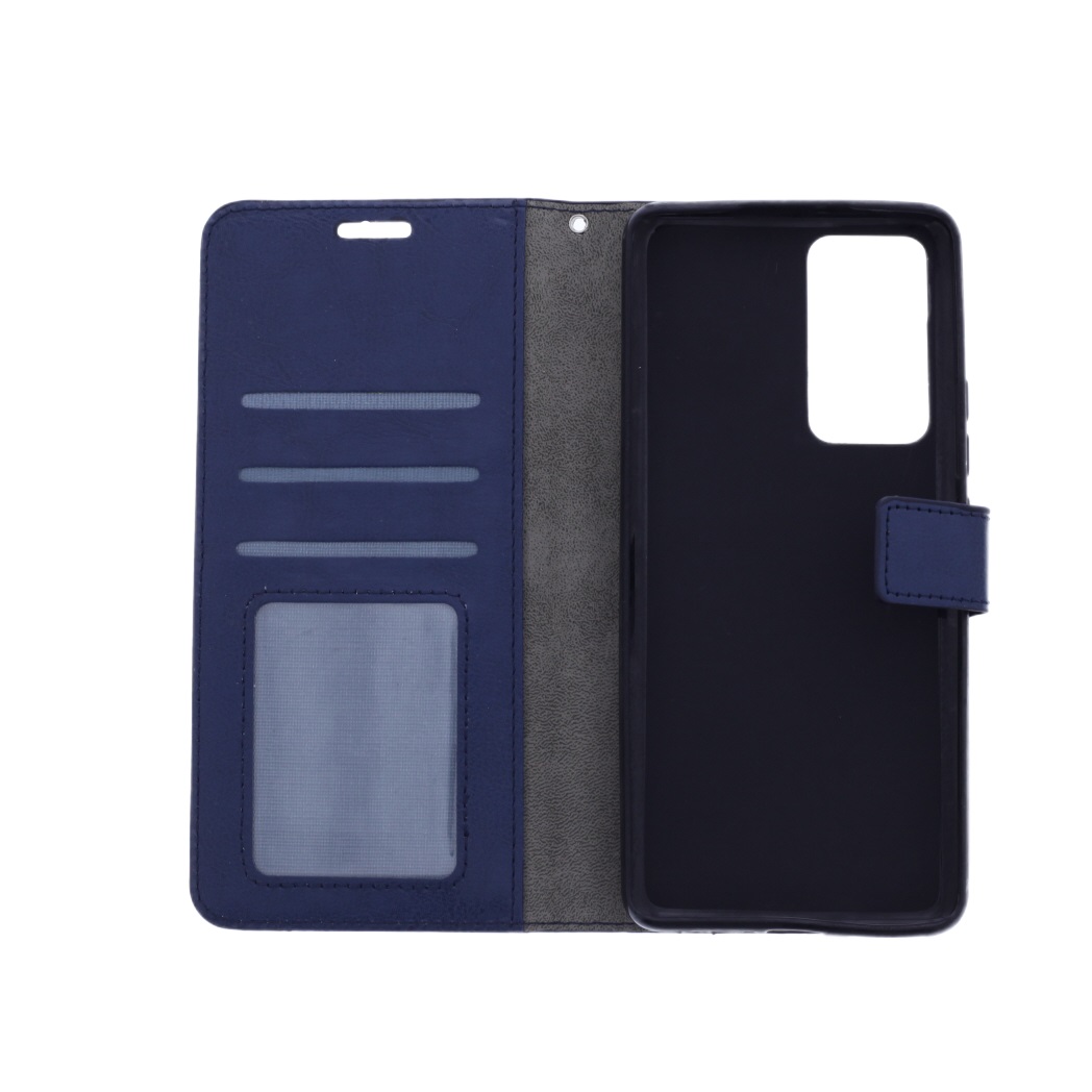 [ Portemonnee-ontwerp ] De Blauw gekleurde bookcase beschikt ook over kaartvakken, waarbij u uw belangrijke kaarten in kunt plaatsen. Portemonnee en telefoonhoesje in 1.