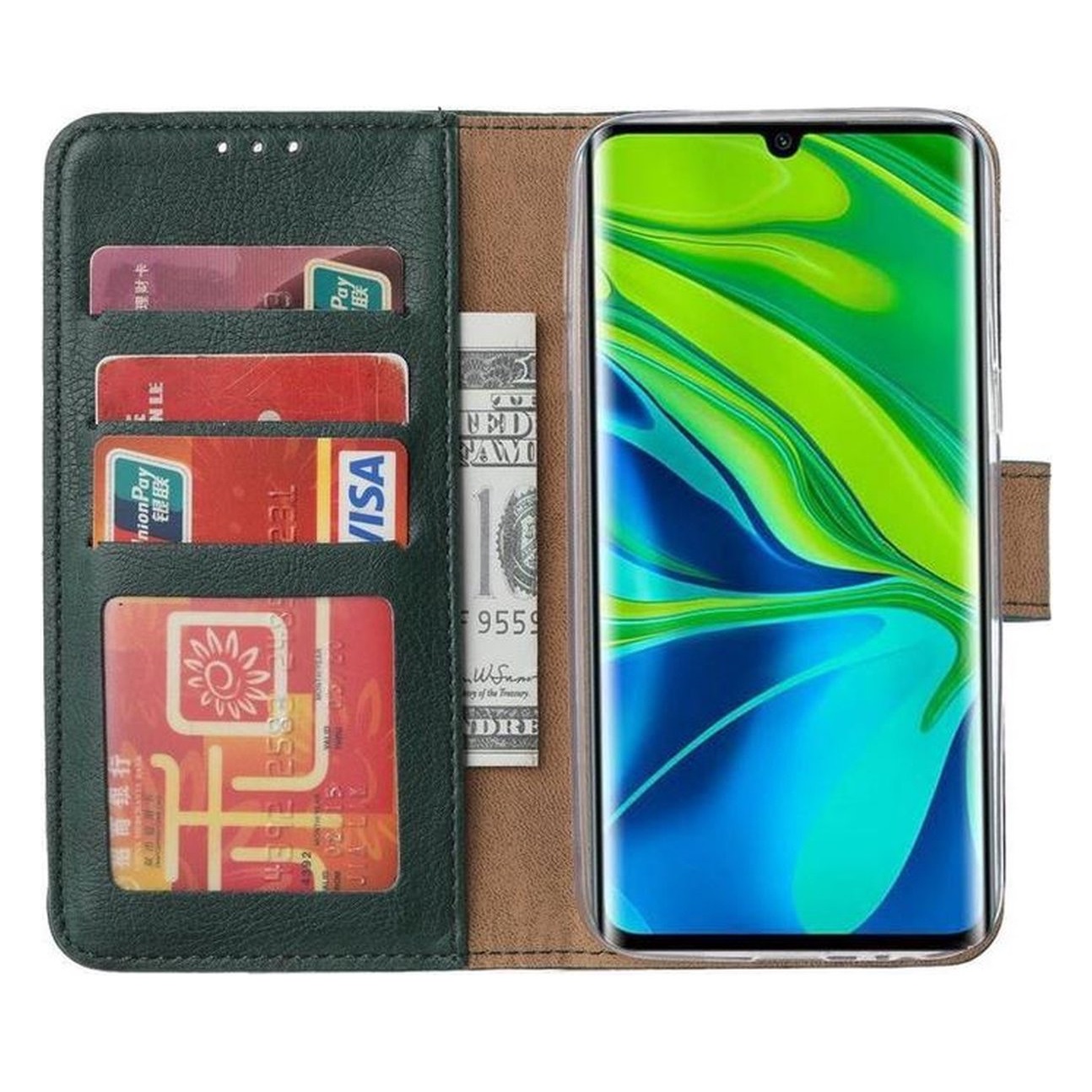 Hoesje geschikt voor Xiaomi Mi Note 10 Lite – Boekhoesje met kaartvakken-Groen