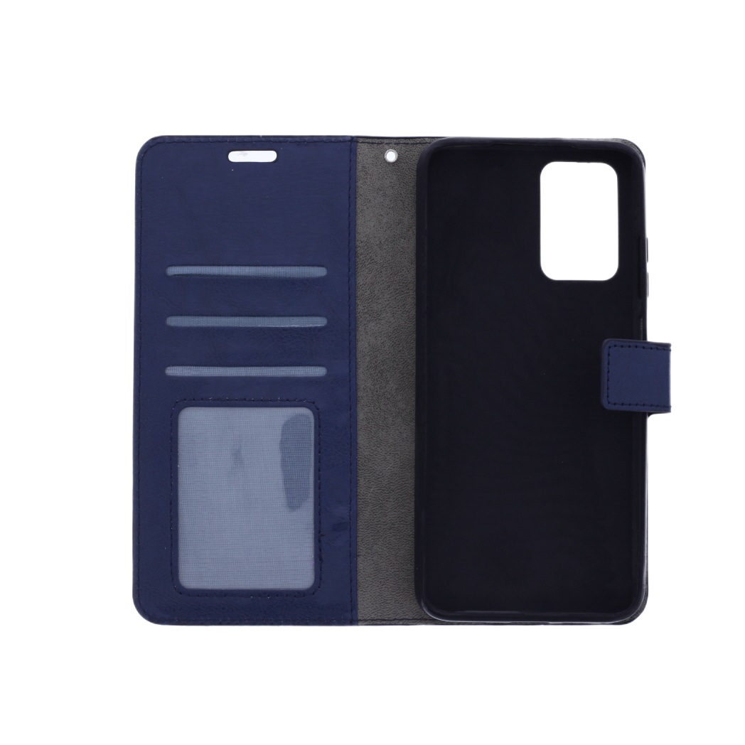 [ Portemonnee-ontwerp ] De Blauw gekleurde bookcase beschikt ook over kaartvakken, waarbij u uw belangrijke kaarten in kunt plaatsen. Portemonnee en telefoonhoesje in 1.