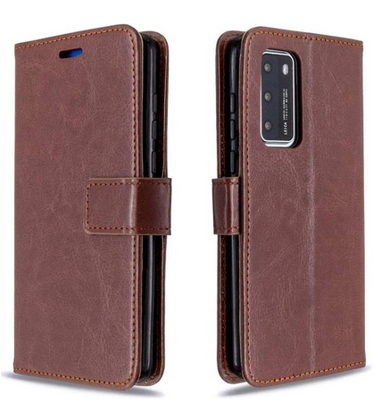 LuxeBass Hoesje geschikt voor Huawei P40 hoesje book case + 2 stuks Glas Screenprotector bruin