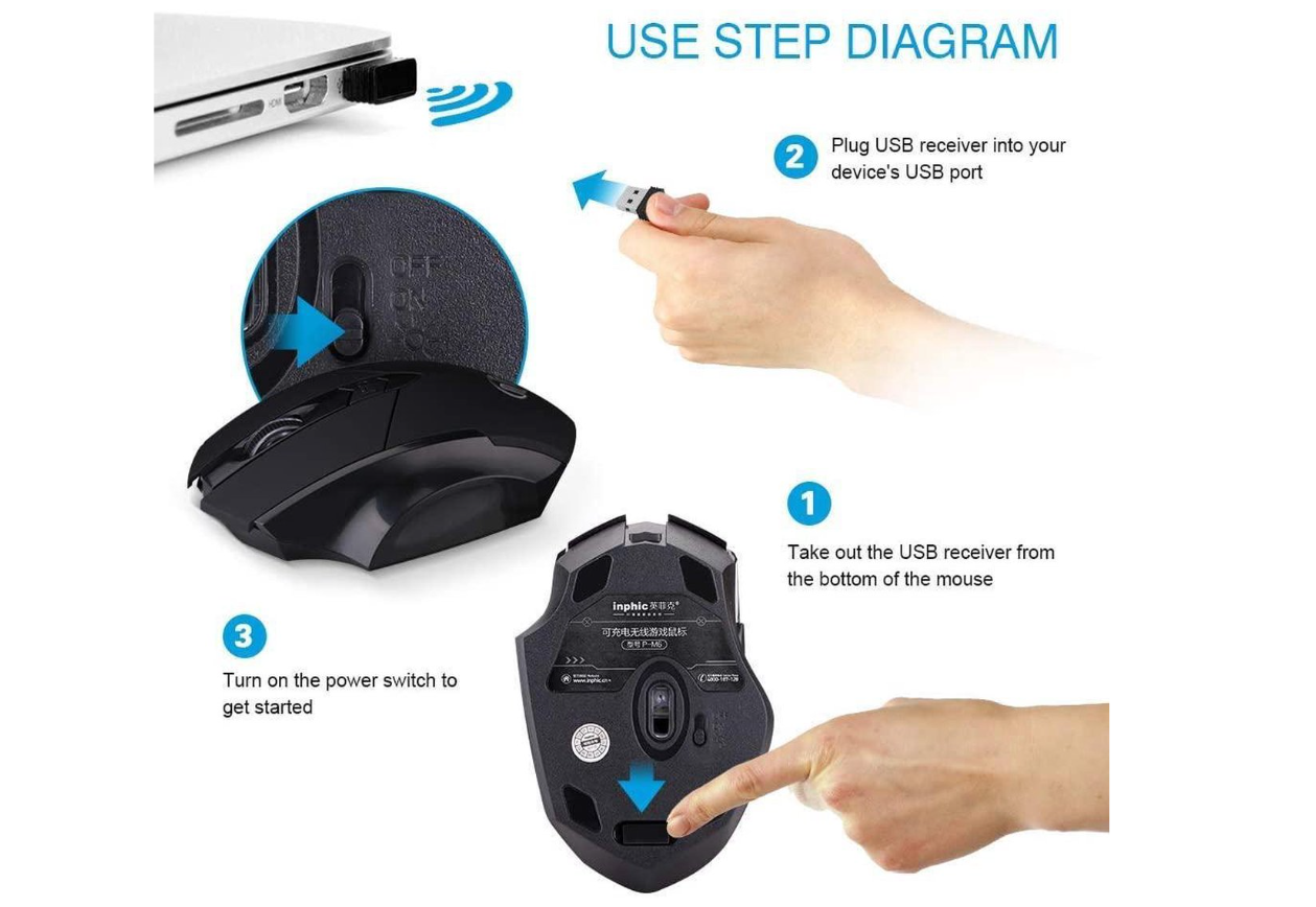 2,4 GHz draadloze gegevensoverdracht: NPHIC geavanceerde 2,4 G draadloze technologie ondersteunt een stabiele verbinding en een nauwkeurig spoor met een werkafstand tot 10 meter. Spelen en pluggen. 3 niveaus DPI instelbaar (800, 1200, 1600) veranderen de snelheid van de muis vrij, waardoor vertragingen en uitval worden geëlimineerd, kunnen worden toegepast voor gaming-thuiskantoren.