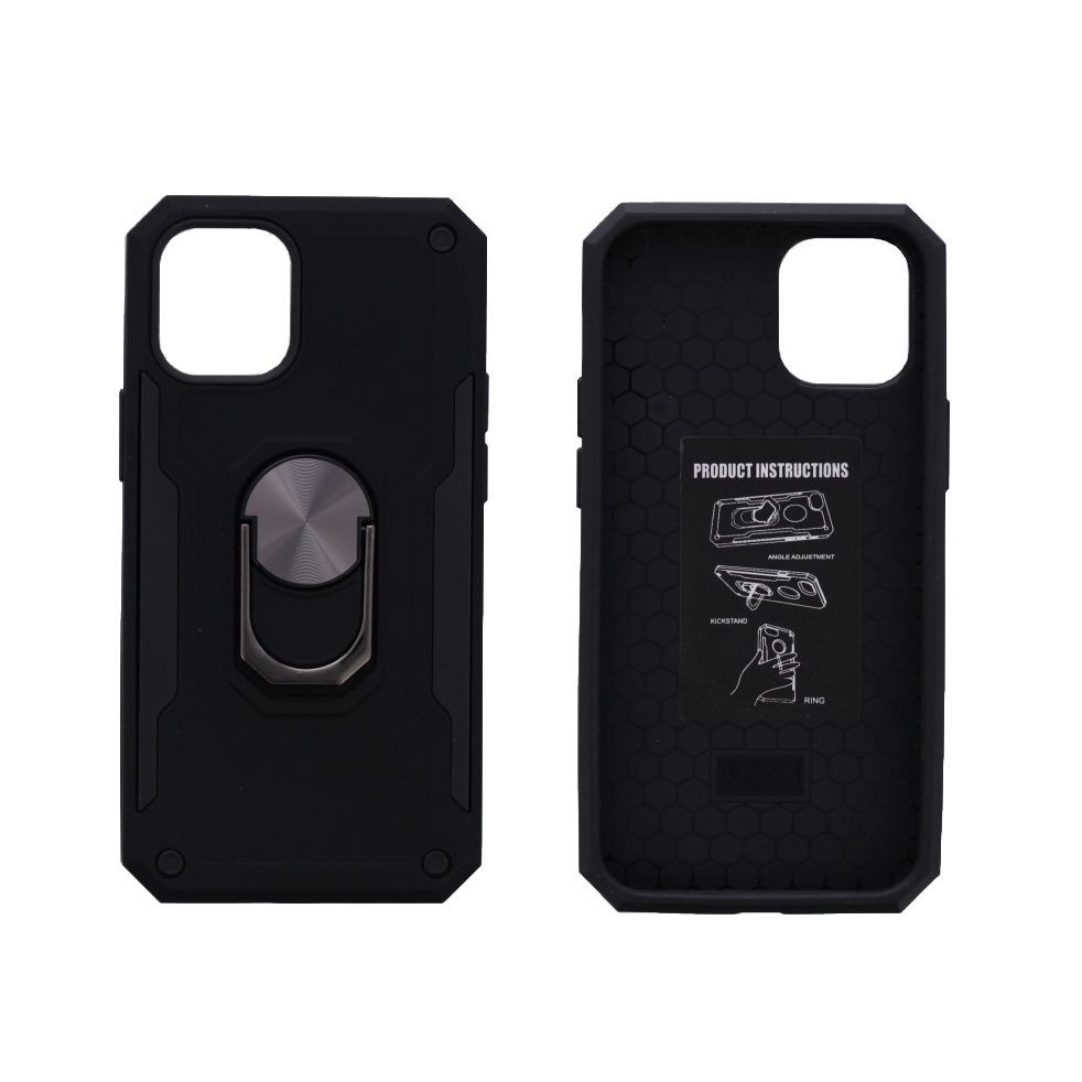 Hoesje geschikt voor iPhone 12 Pro Hoesje – Anti-Shock Hybrid Ring Armor Zwart