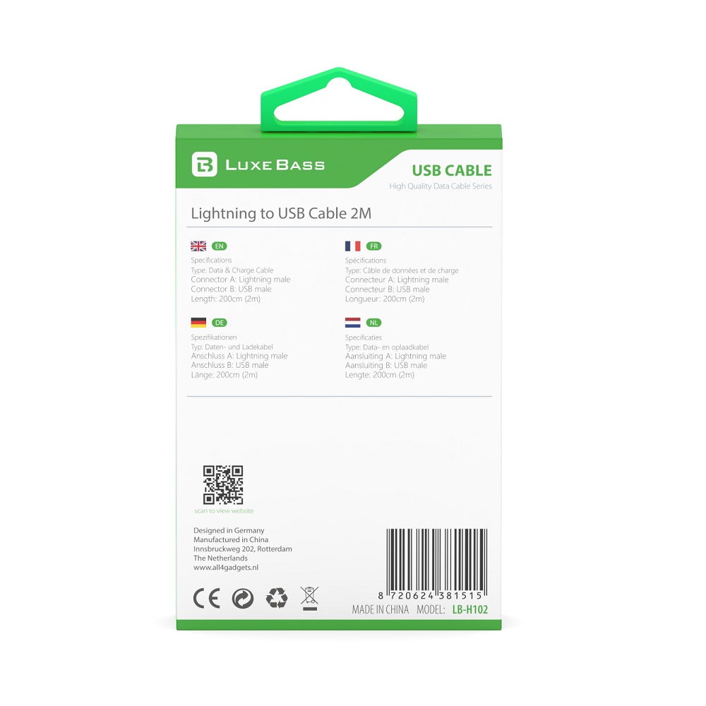 Luxebass iPhone kabel & iPad kabel 2 meter | Datakabel Oplaadkabel | USB-A naar Lightning – LBH102