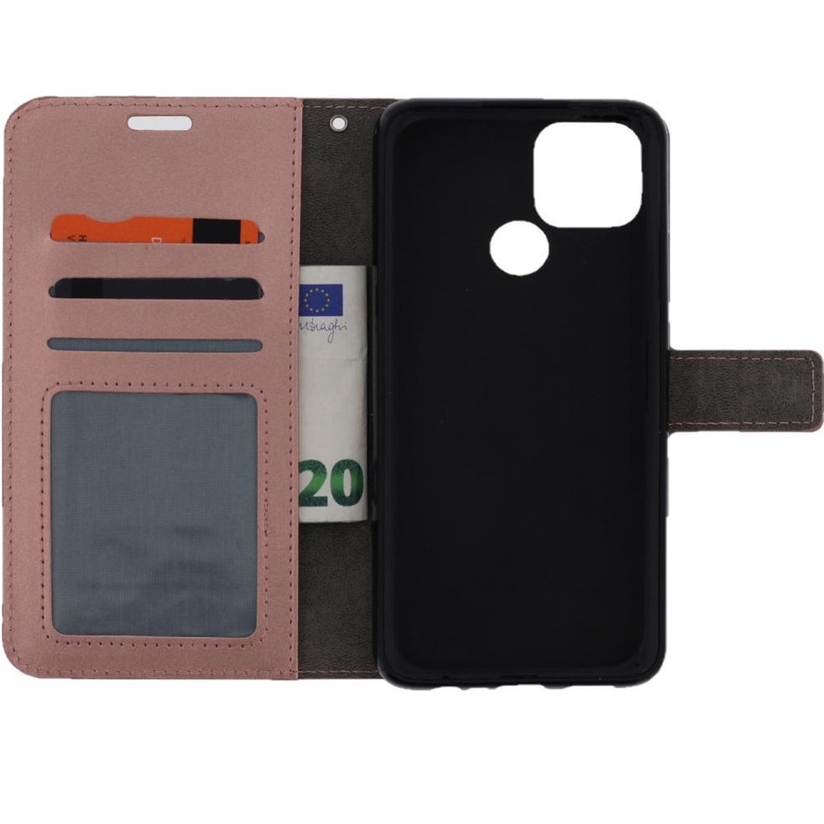 Dit product: Telefoon Wallet Bookcase geschikt voor Oppo A15 - Portemonnee telefoonhoesje voor Bankpassen - Hoesje voor Oppo A15 - Kunstleer - Siliconen Houder - Magnetische sluiten- Rose goud