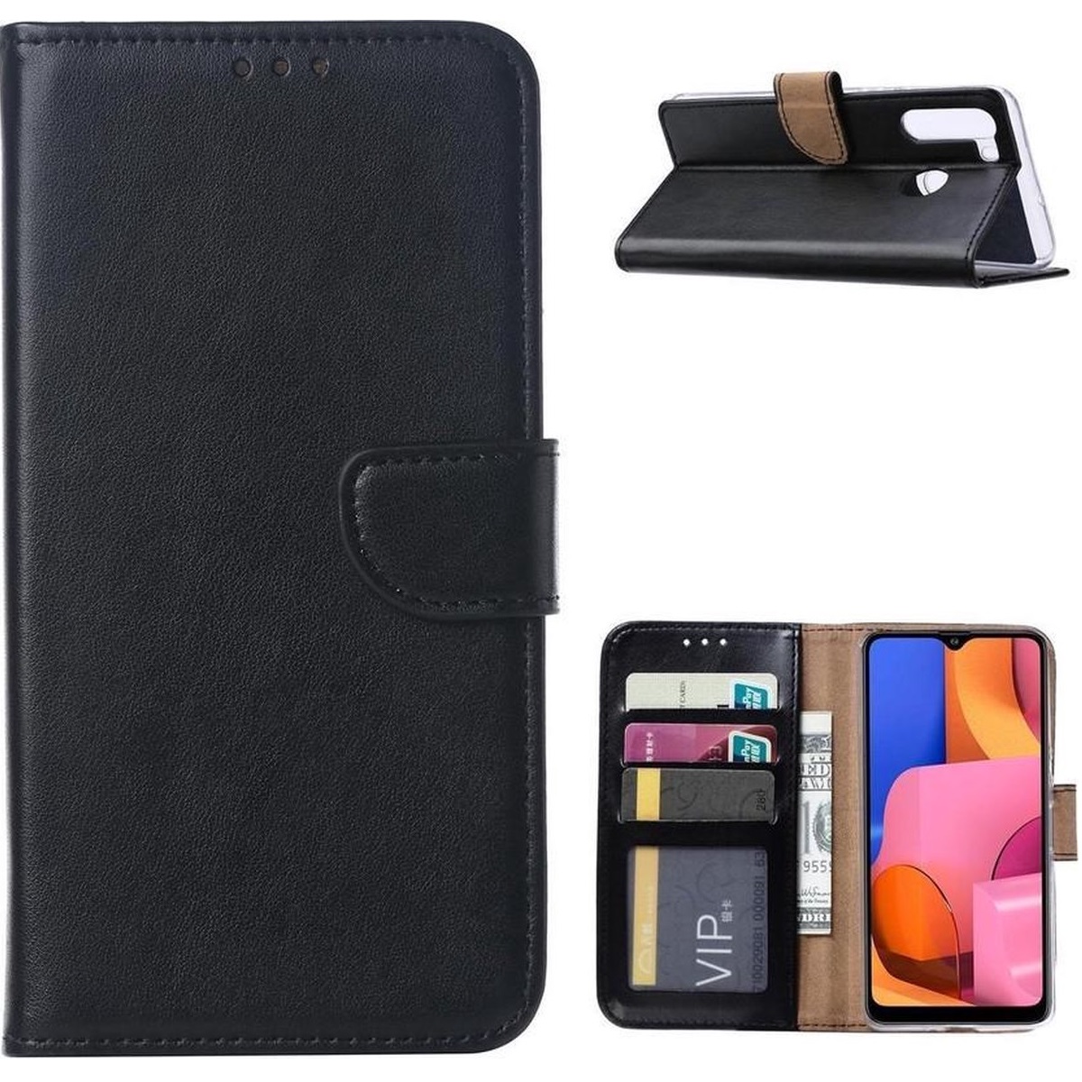 Telefoon Wallet Bookcase geschikt voor Samsung Galaxy M31S ? Portemonnee telefoonhoesje voor Bankpassen ? Hoesje voor Samsung Galaxy M31S ? Kunstleer ? Siliconen Houder ? Magnetische sluiten- Zwart