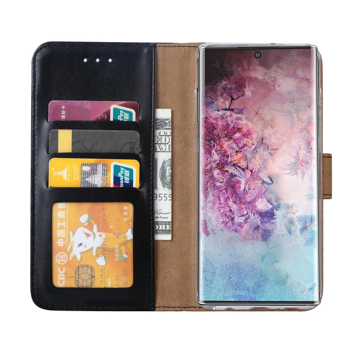 Telefoon Wallet Bookcase geschikt voor Samsung Galaxy Note 10 Plus – Portemonnee telefoonhoesje voor Bankpassen – Kunstleer – Siliconen Houder – Magnetische sluiten- Zwart