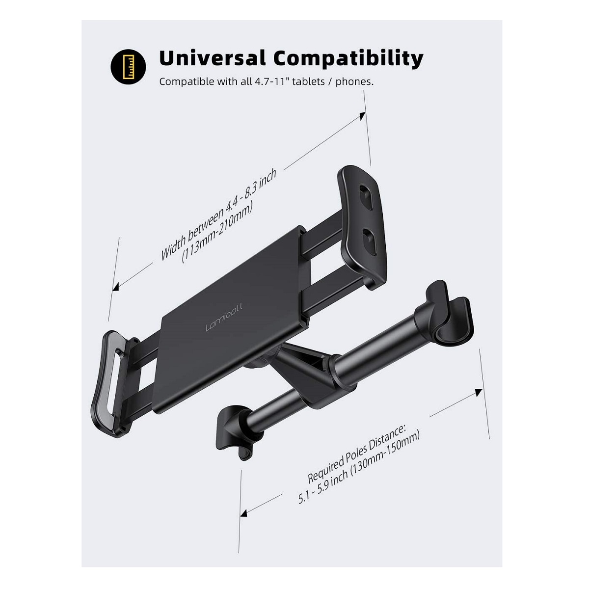 iPad Tablet Hoofdsteun Houder Auto | Auto Tablethouder en Telefoonhouder voor Kinderen | Zwart LB468
