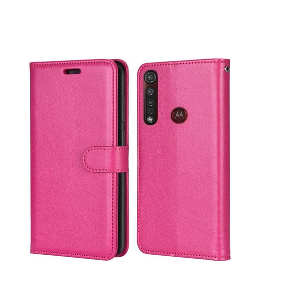 LuxeBass hoesje geschikt voor Motorola One Macro hoesje book case + 2 stuks Glas Screenprotector roze