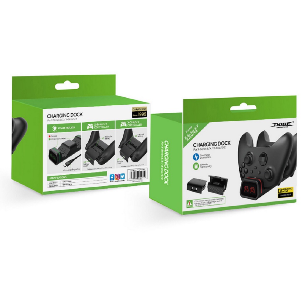 De Dobe Xbox One / Series X / Series S controller oplaadstation is een revolutionaire oplossing voor al je oplaadproblemen. Het is een stijlvolle, kleurrijke en handige oplaadstation dat perfect past bij de Xbox One / Series X / Series S controller. Het oplaadstation is uitgerust met twee Lithium-ion batterijen met elk een opslagcapaciteit van 800mAh, waardoor je meerdere controllers tegelijk kunt opladen. De controllers worden opgeladen wanneer je niet aan het gamen bent waardoor je niet meer onverwachts een lege accu hebt. Het oplaadstation is voorzien van een rode en groene LED indicator. De LED-indicator geeft aan wanneer het opladen is voltooid, zodat je je controllers nooit meer met lege batterijen hoeft achter te laten. Het oplaadstation is voorzien van een stevig en stijlvol design.
