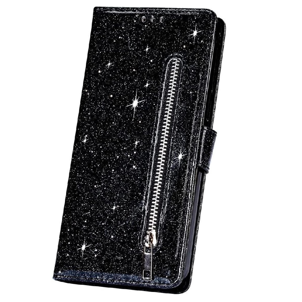 Dit product: Hoesje geschikt voor Oppo A73 Glitter Bookcase met rits van LuxeBass - hoesje - portemonneehoesje - Zwart