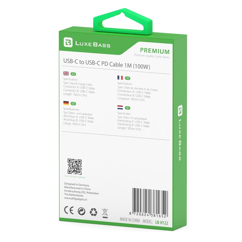 Premium Series (1M) USB-C Data- en Oplaadkabel 100W – LBH122