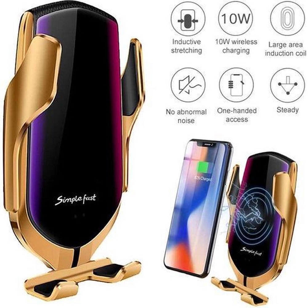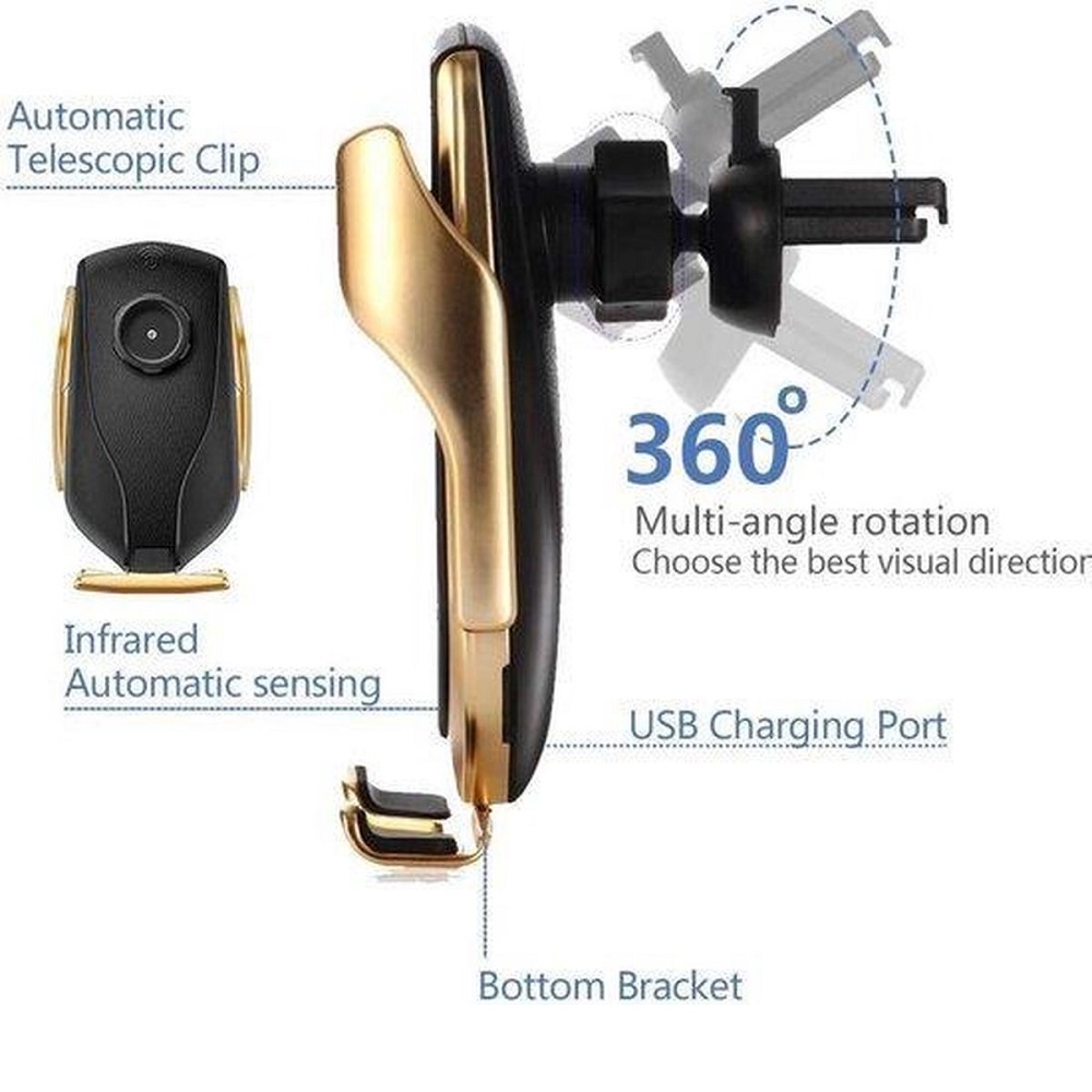 R2 Auto Telefoonhouder met Draadloze Qi lader – Zwart