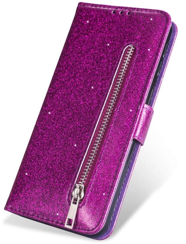 Hoesje geschikt voor Samsung Galaxy A11 Glitter Bookcase hoesje met rits – Paars