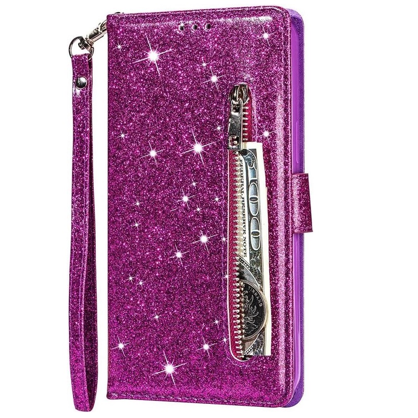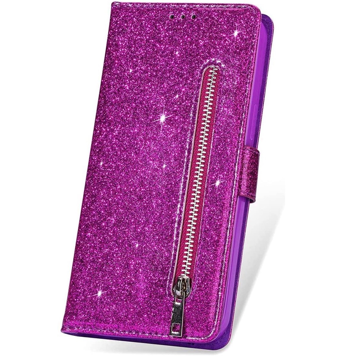 Hoesje geschikt voor Samsung Galaxy A12 Glitter Bookcase met rits – hoesje – portemonneehoesje – Paars
