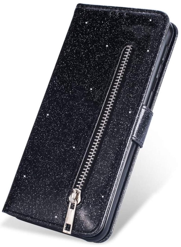 Hoesje geschikt voor Samsung Galaxy A20e Glitter Bookcase hoesje – Zwarte Portemonnee met rits