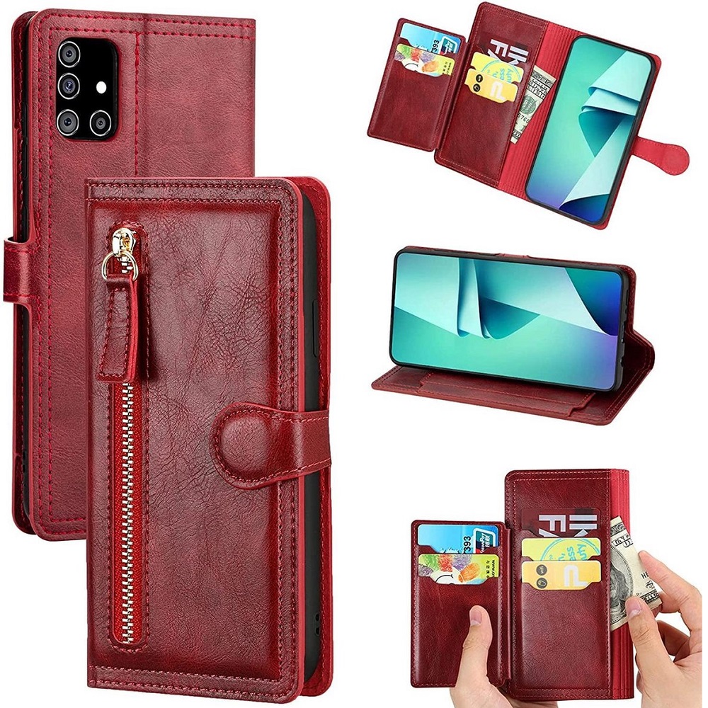 Hoesje geschikt voor Samsung Galaxy A21s Book case met ritssluiting van LuxeBass – Flipcover – Magnetisch – 5 kaarten houder – Rood