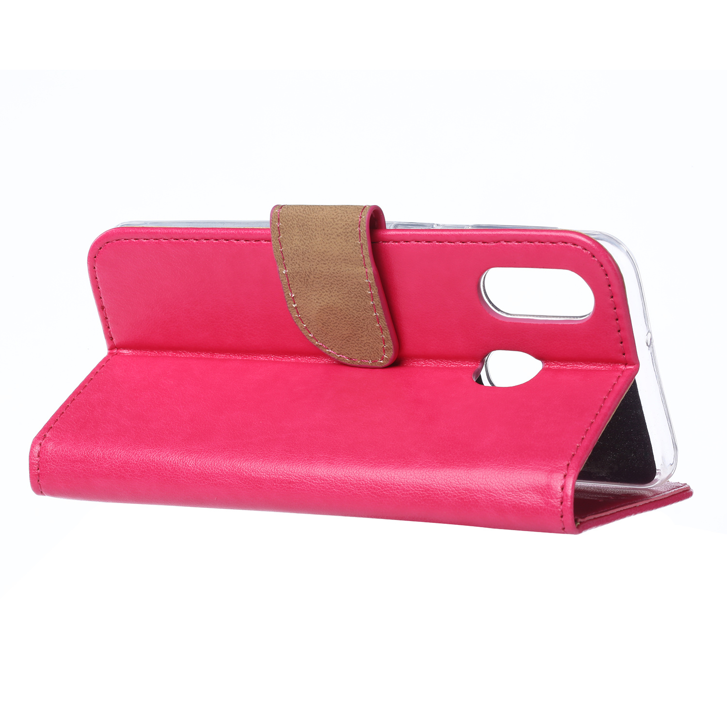 Dit boek hoesje is speciaal gemaakt voor uw Samsung Galaxy A40. Uw Samsung Galaxy A40 zit in de binnenkant aan een zachte transparante silicone houder, zo wordt uw Samsung Galaxy A40 in deze book case van alle kanten beschermd tegen vallen en of stoten. Het hoesje is voorzien van een magneetsluiting dat naar voren sluit. U kunt bijvoorbeeld pasjes of briefgeld bewaren in deze book case voor uw Samsung Galaxy A40. Dankzij specifieke uitsparingen (voor de camera, opladen, zijknopjes) in dit boekhoesje kunt u van uw Samsung Galaxy A40 blijven genieten zonder dat de Samsung Galaxy A40 uit het hoesje gehaald hoeft te worden. Dit boek hoesje maakt het mogelijk om uw Samsung Galaxy A40 in horizontale stand neer te leggen om bijvoorbeeld een filmpje te kunnen kijken. Doordat er openingen aan de voorzijde in dit boek hoesje zitten, kunt u met het hoesje gesloten bellen als u het gesprek heeft aangenomen.