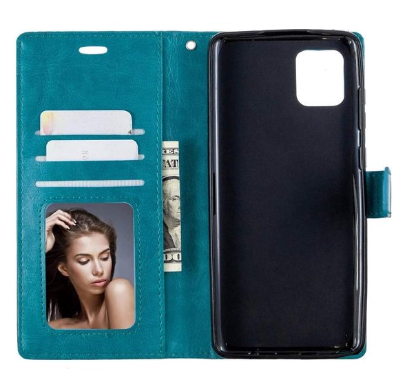 LuxeBass hoesje geschikt voor Samsung Galaxy A51 hoesje book case + 2 stuks Glas Screenprotector turquoise