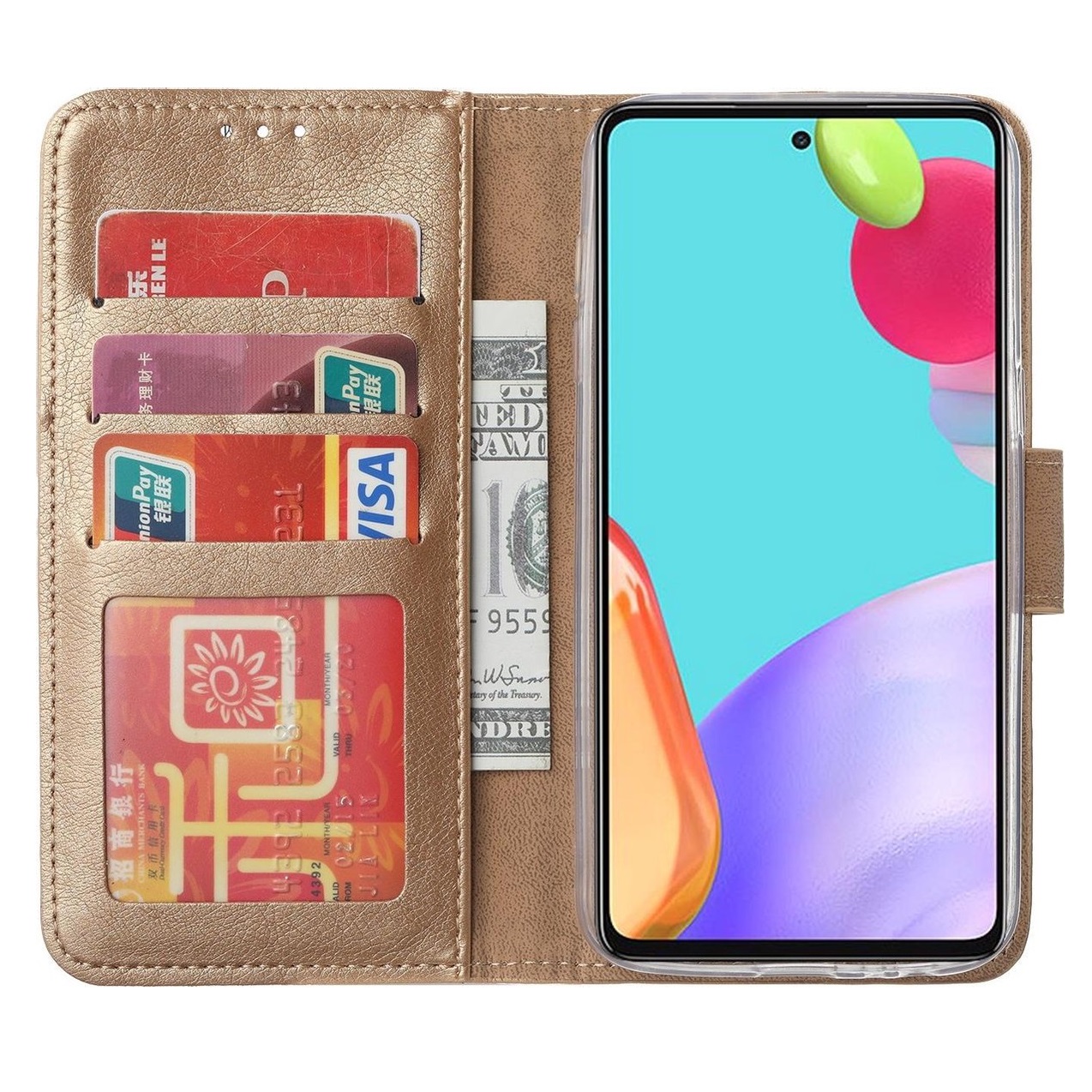 LuxeBass book case voor Samsung A52 goud – wallet & pasjeshouder