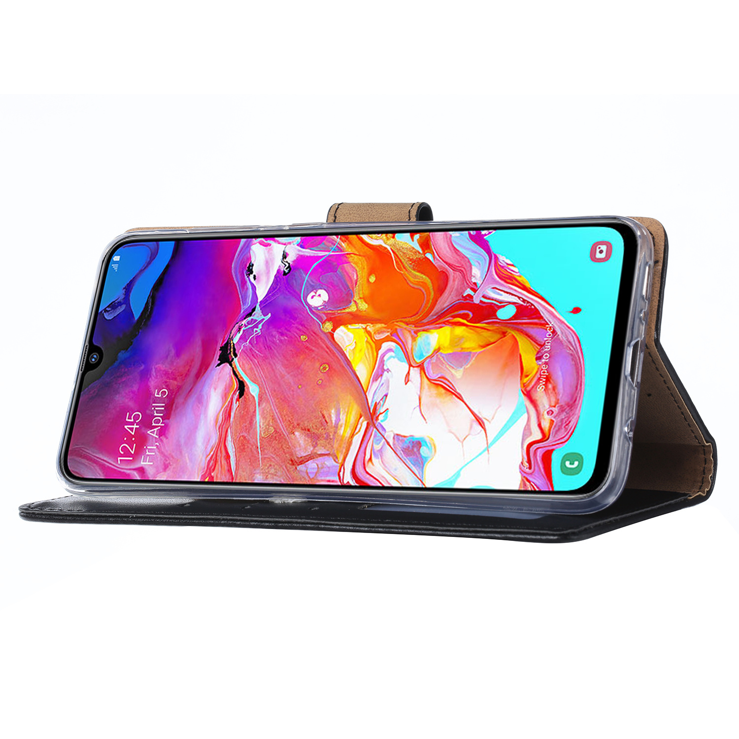 Dit boek hoesje is speciaal gemaakt voor uw Samsung Galaxy A70 / A70S. Uw Samsung zit in de binnenkant aan een zachte transparante silicone houder, zo wordt uw Samsung in deze book case van alle kanten beschermd tegen vallen en of stoten. Het hoesje is voorzien van een magneetsluiting dat naar voren sluit. U kunt bijvoorbeeld pasjes of briefgeld bewaren in deze book case voor uw Samsung. Dankzij specifieke uitsparingen (voor de camera, opladen, zijknopjes) in dit boekhoesje kunt u van uw Samsung blijven genieten zonder dat de Samsung uit het hoesje gehaald hoeft te worden. Dit boek hoesje maakt het mogelijk om uw Samsung in horizontale stand neer te leggen om bijvoorbeeld een filmpje te kunnen kijken. Doordat er openingen aan de voorzijde in dit boek hoesje zitten, kunt u met het hoesje gesloten bellen als u het gesprek heeft aangenomen.