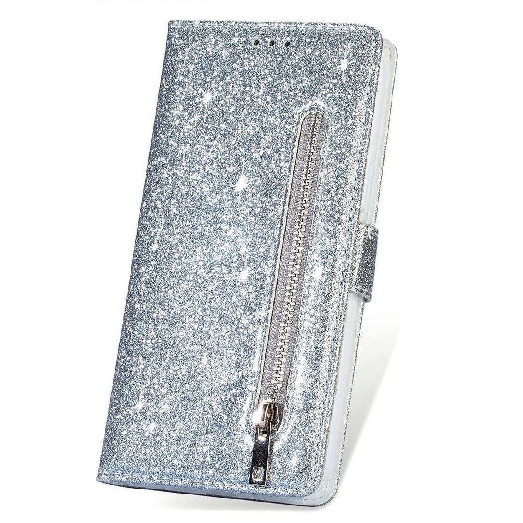 Hoesje geschikt voor Samsung Galaxy A71 Glitter Bookcase met rits – hoesje – portemonneehoesje – Zilver