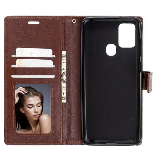 LuxeBass hoesje geschikt voor Samsung Galaxy M31 hoesje book case + 2 stuks Glas Screenprotector bruin