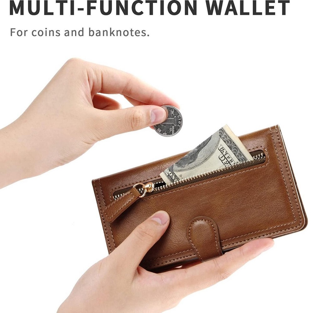Hoesje geschikt voor Samsung Galaxy S21 Plus Book case met ritssluiting van LuxeBass – Flipcover – Magnetisch – 5 kaarten houder – Donkerbruin