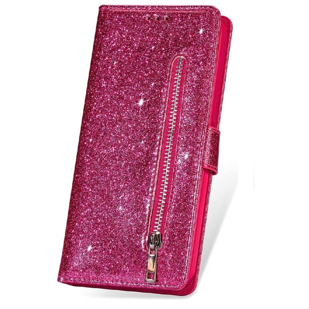 Hoesje geschikt voor Samsung Galaxy S21 Ultra Glitter Bookcase met rits – hoesje – portemonneehoesje – Roze