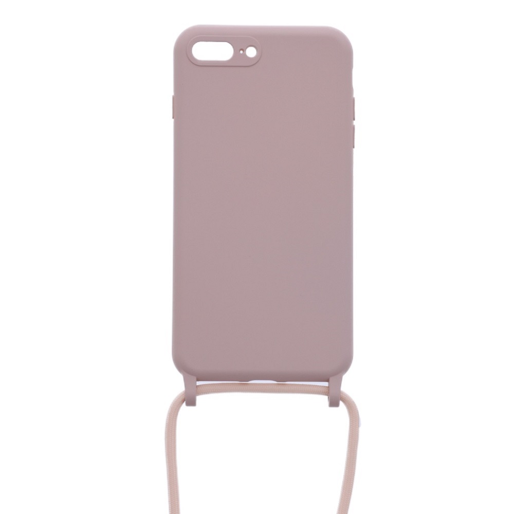 Siliconen hoesje met koord geschikt voor Apple iPhone 8 Plus – Licht Roze