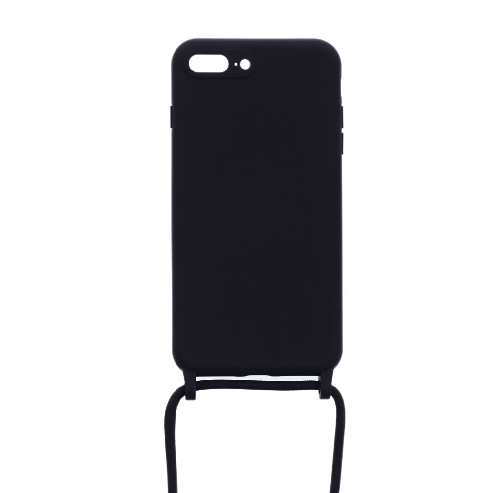 Siliconen hoesje met koord geschikt voor Apple iPhone 8 Plus – Zwart