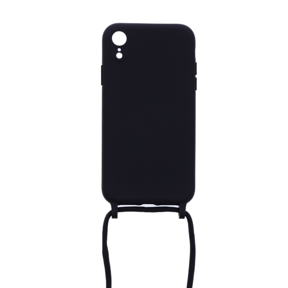 Siliconen hoesje met koord geschikt voor Apple iPhone XR – Zwart