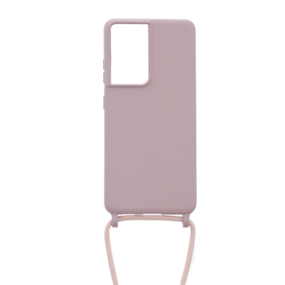Siliconen hoesje met koord geschikt voor Samsung Galaxy S21 Ultra – Licht Roze