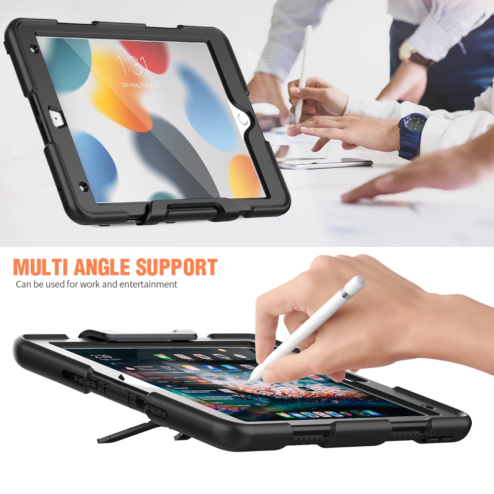 Deze Tablet case is shockproof en beschikt over een zeer dikke beschermlaag aan de achterkant van deze hoes. De hoes is gemaakt van hoogwaardige TPU die ervoor zorgt dat uw Apple iPad 10.2″ (2019/2020/2021) | iPad Pro 10.5″ | iPad Air 3stevig aan de hoes blijft en ook tijdens snelle bewegingen er niet uit valt. Hoewel deze Shockproof hoes heel sterk is, biedt het toch tegelijkertijd genoeg flexibiliteit aan, mede omdat de hoes nog steeds gewoon in je rugzak past.