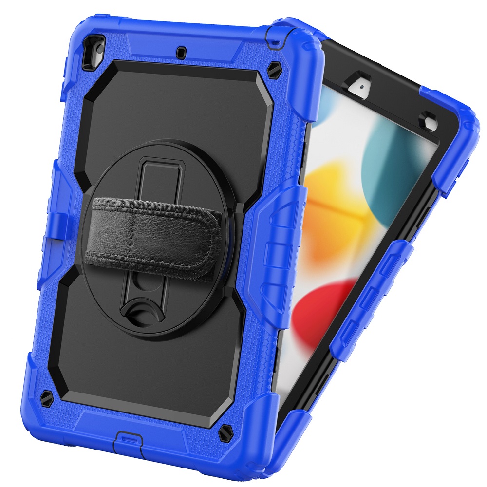 De beschermhoes zorgt voor een volledige bescherming en heeft een strap die je kan gebruiken om je handen erin te doen of eventueel vast te maken aan een object. Ook is het voorzien van een riem die je kan gebruiken om de tablet te dragen of vast te maken aan een object. Daarnaast is het voorzien van een roteerbaar standaard waarmee je de tablet zowel verticaal of horizontaal ergens te plaatsen.