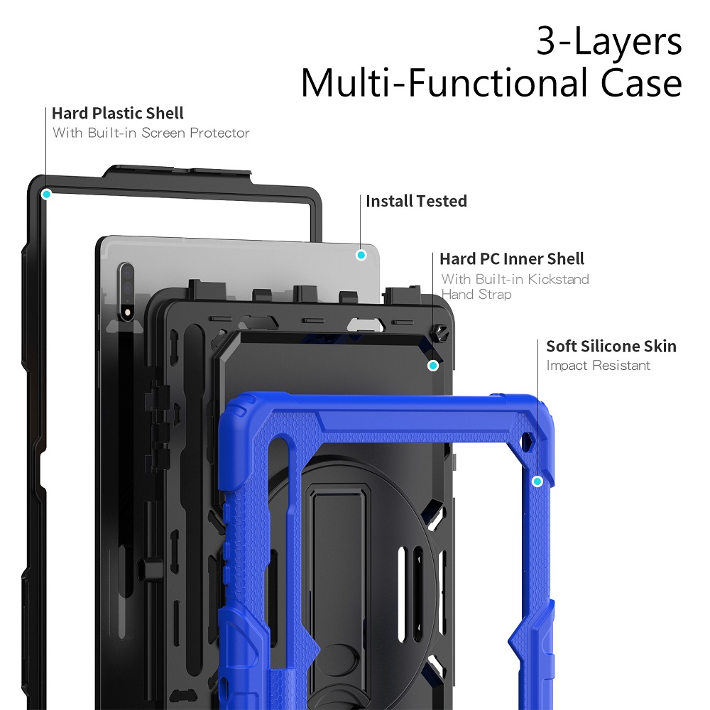 Deze Tablet case is shockproof en beschikt over een zeer dikke beschermlaag aan de achterkant van deze hoes. De hoes is gemaakt van hoogwaardige TPU die ervoor zorgt dat uw Samsung Galaxy Tab S8 Ultra (X900) 14.6″ (2022) stevig aan de hoes blijft en ook tijdens snelle bewegingen er niet uit valt. Hoewel deze Shockproof hoes heel sterk is, biedt het toch tegelijkertijd genoeg flexibiliteit aan, mede omdat de hoes nog steeds gewoon in je rugzak past.