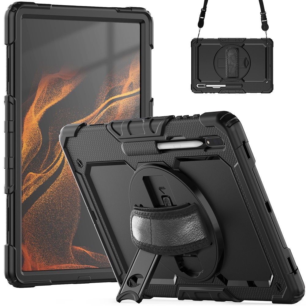 Tablet hoesje met Strap geschikt voor Samsung Galaxy Tab S8 Ultra (X900) 14.6″ (2022) – Zwart