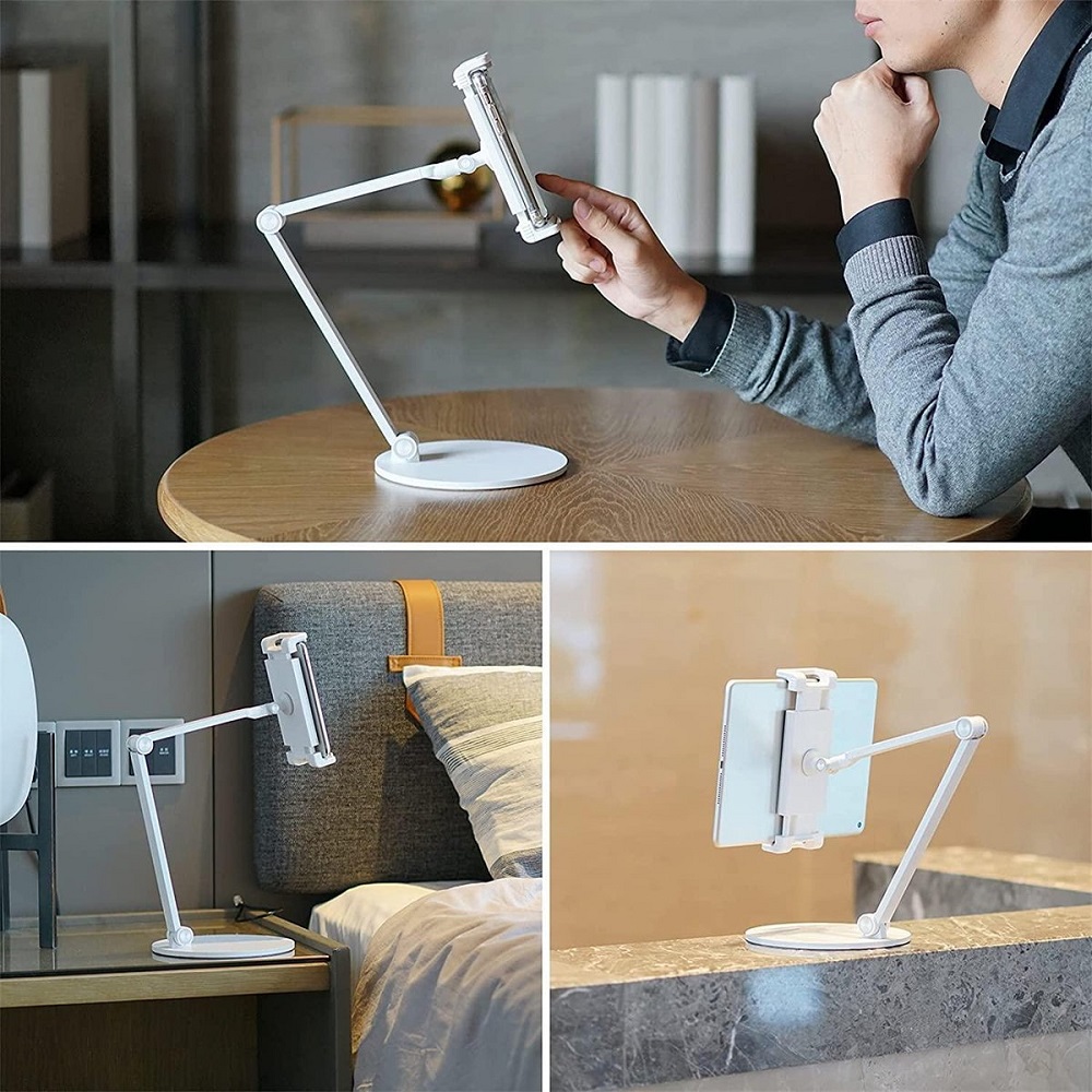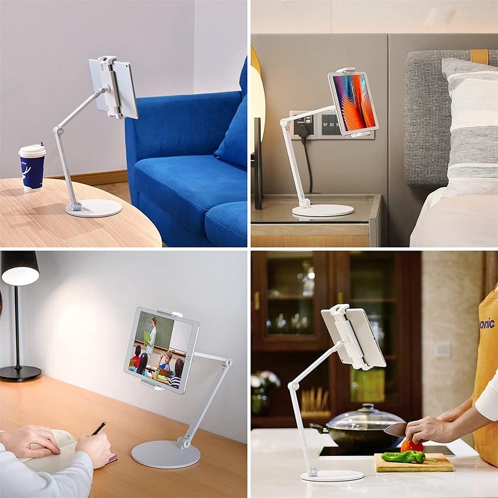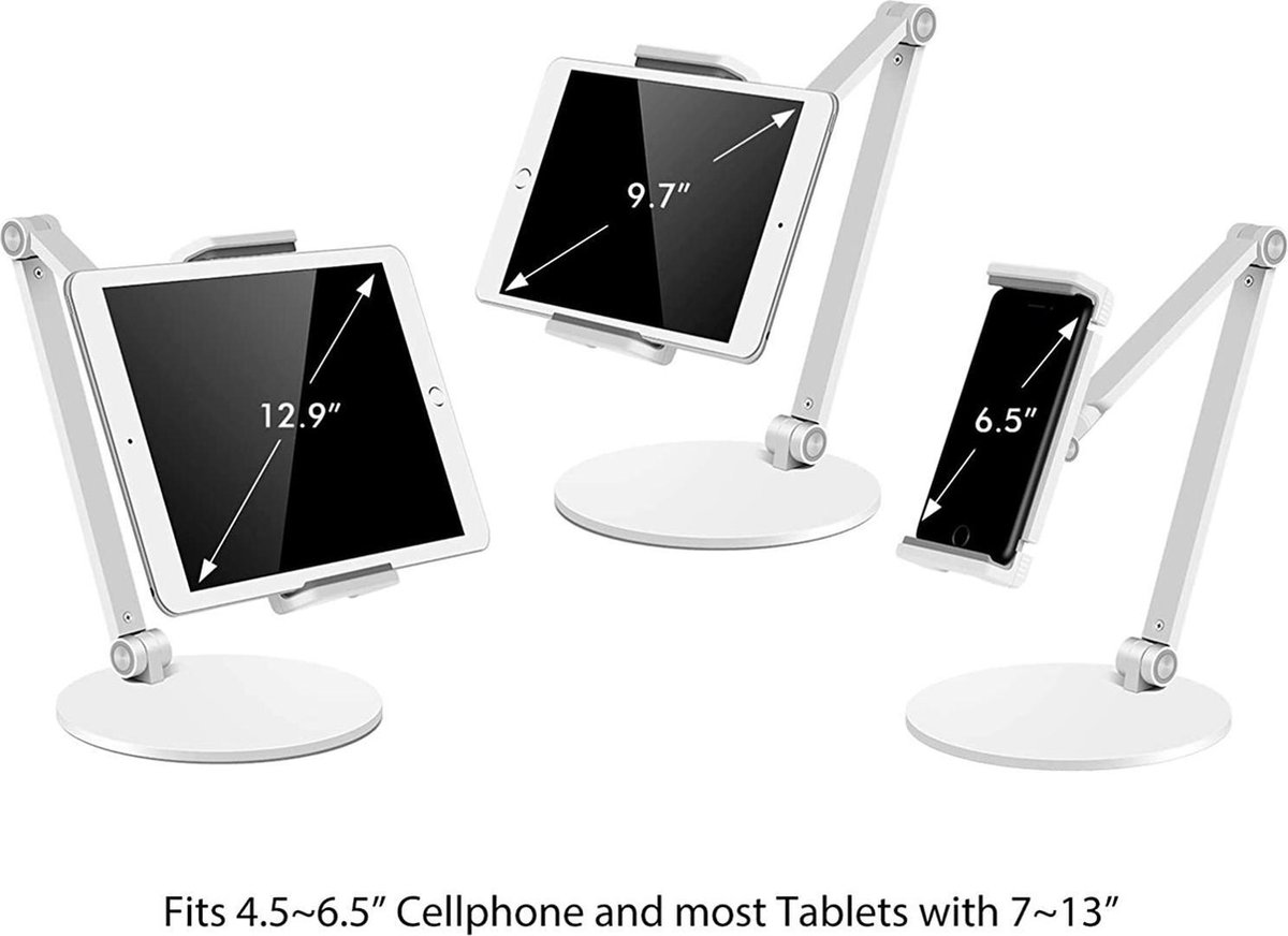 [Premium Materiaal] Gemaakt van massief staal om verschillende tablets en mobiele telefoons van 4.7 inch tot 12.9 inch te ondersteunen en tot 1kg aan draagvermogen.