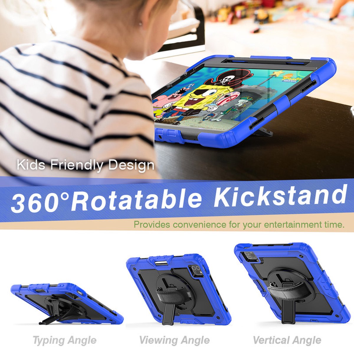 [ Stand Up Functie ] De Blauw gekleurde tablethoes is makkelijk in verschillende kijkhoeken te veranderen, zowel staand als liggend functie. Zo kan je comfortabel je favoriete filmpjes op je Apple iPad Pro 11 (2021) kijken.