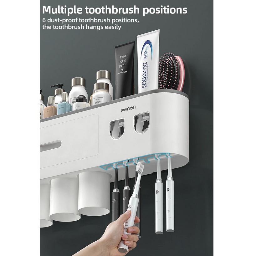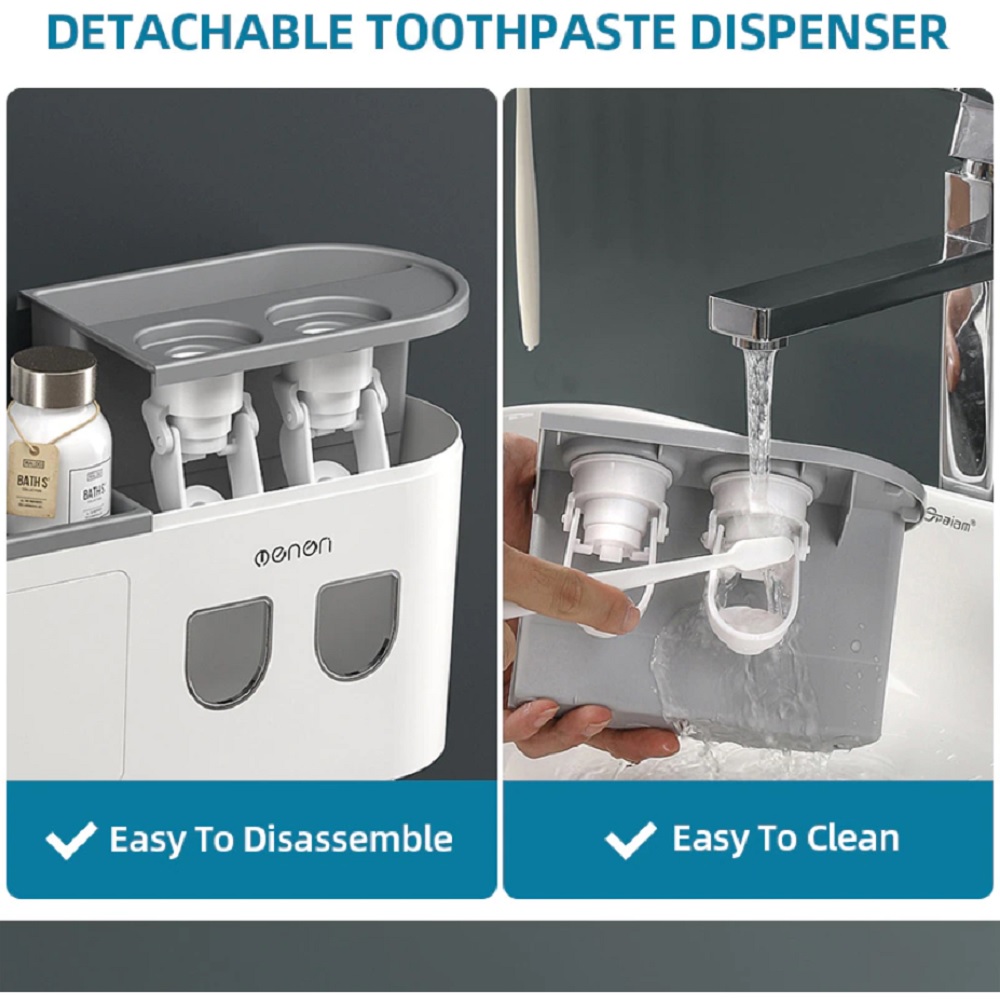 [Automatisch dispenser] De tandenborstel organizer komt met twee automatische dispensers. Dit is handig voor huishoudens waar twee verschillende tandpasta’s worden gebruikt