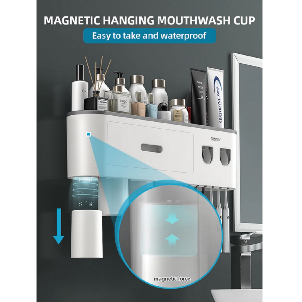 Deze tandenborstel organizer met automatische dispenser voor je tandpasta is voor velen een must have voor in de badkamer. Het kan in de badkamer gauw al rommelig worden door alle verschillende cosmetische en hygiënische producten. Denk bijvoorbeeld aan tandpasta, parfum, tandenstokers, watten staafjes, gezicht reiniging crème, et cetera.