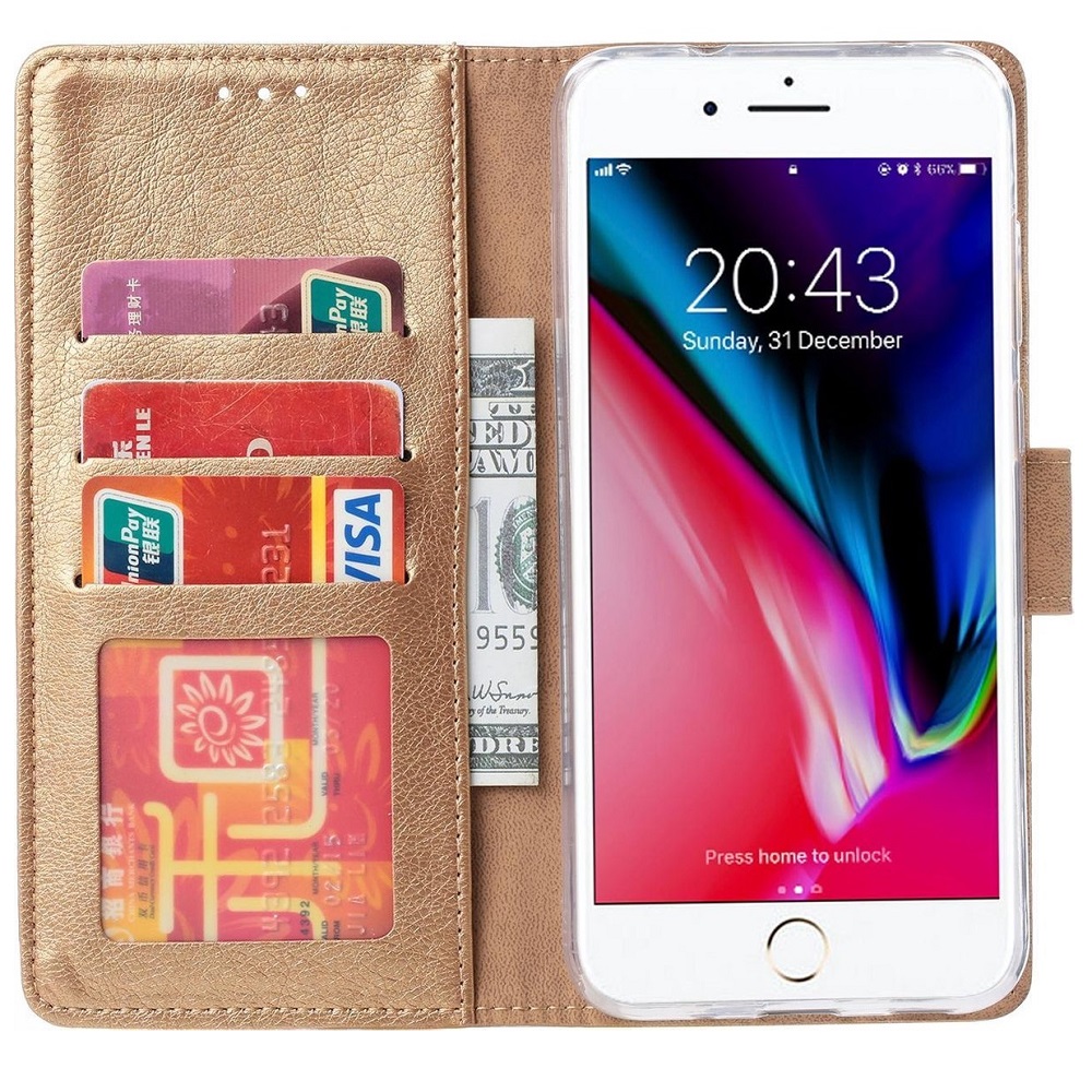 Telefoon Wallet Bookcase geschikt voor iPhone XR – Portemonnee telefoonhoesje voor Bankpassen – Kunstleer – Siliconen Houder – Magnetische sluiten – Goud