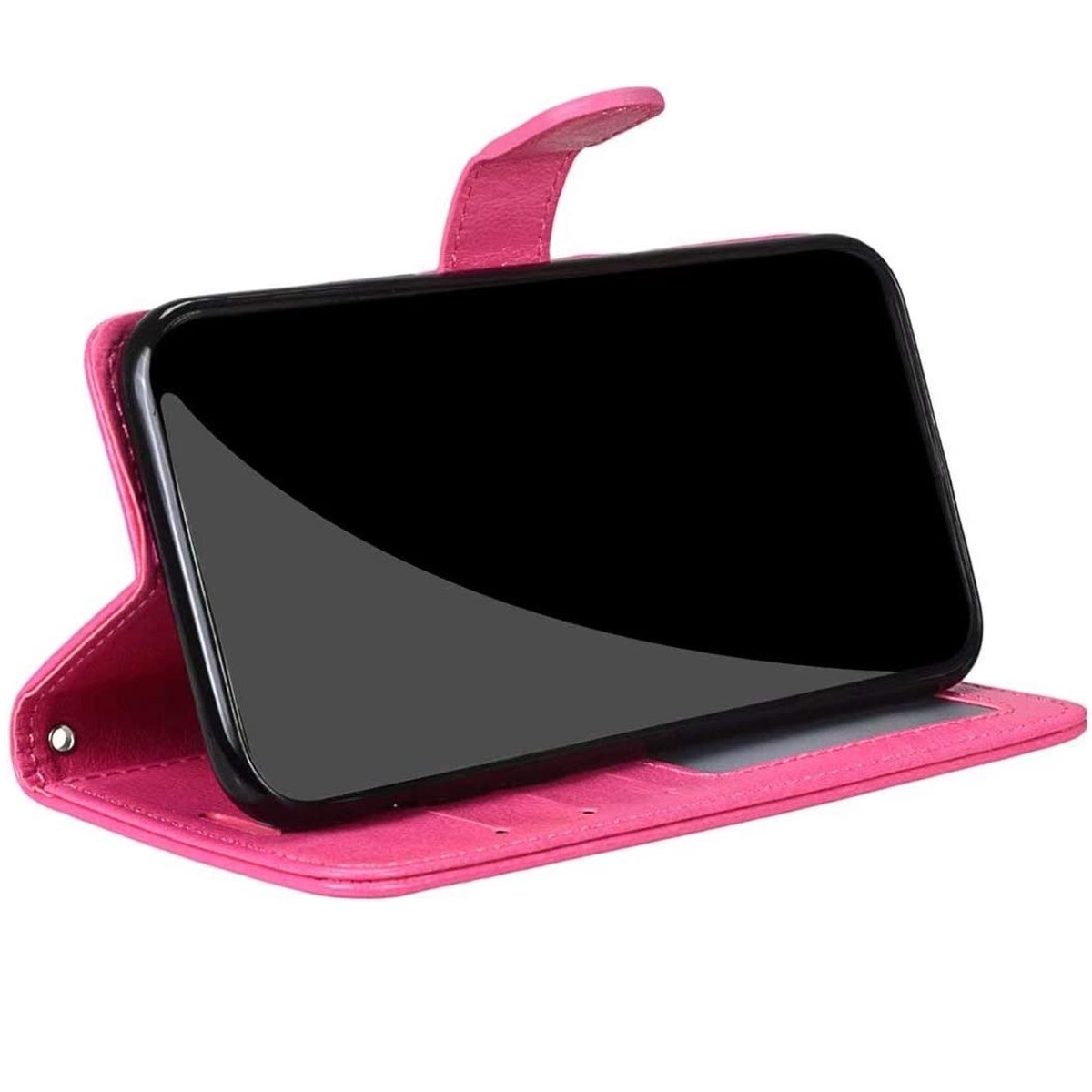 [Meerdere perspectieven] De telefoonhoes beschikt over een handige stand-up functie, waardoor je jouw telefoon rechtop kan zetten terwijl je een favoriete film op serie kijkt.