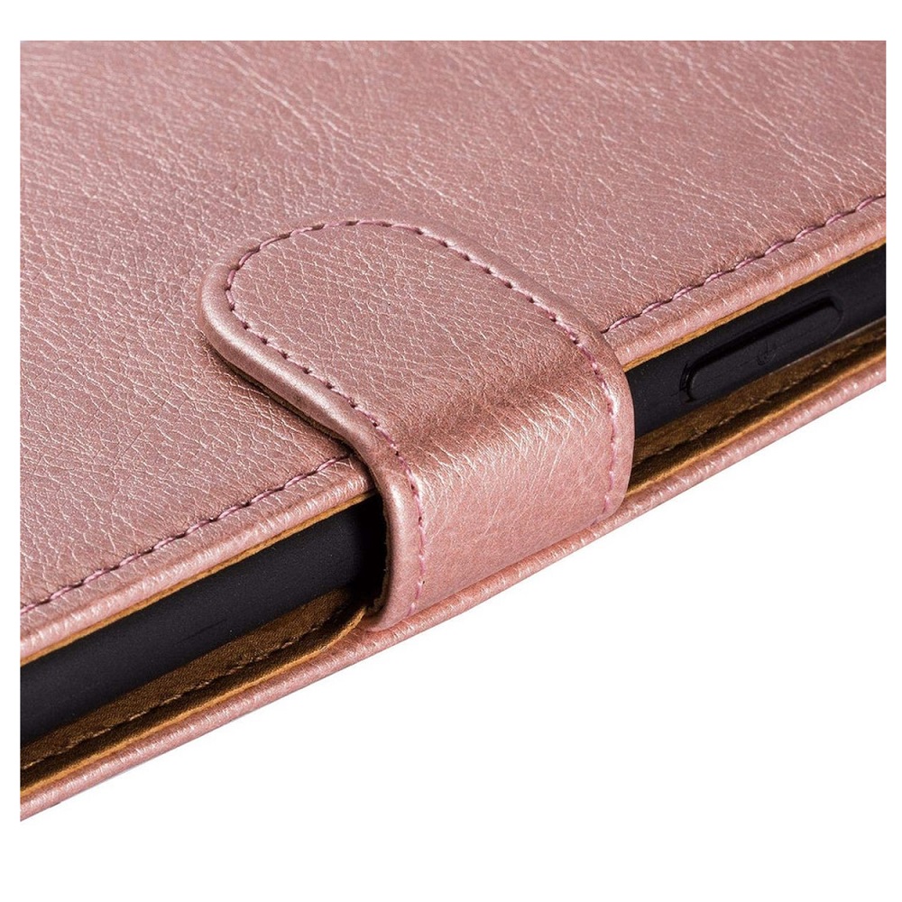 [Portemonnee-ontwerp] De rose Goud gekleurde telefoonhoes is uitgerust met diverse kaart en geldvakken waarmee het de mogelijkheid biedt om het tevens als zijnde portemonnee te gebruiken.
