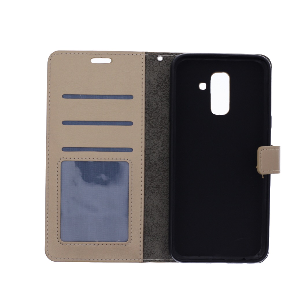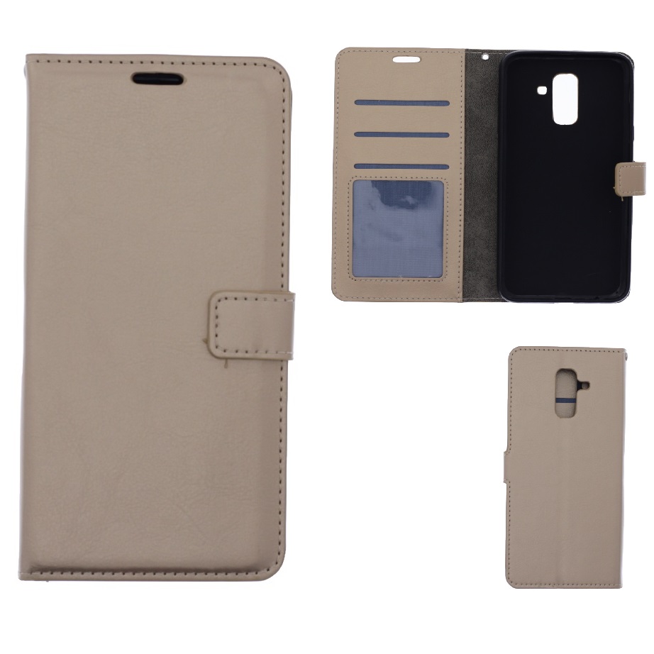 Telefoon Wallet Bookcase geschikt voor Samsung Galaxy A6 Plus 2018-Portemonnee telefoonhoesje voor Bankpassen-Kunstleer-Siliconen Houder-Magnetische sluiten- Goud